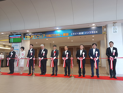オープニングセレモニーでは、「けんせつフェア北陸2025 in 新潟」実行委員長 加藤智博様より開会宣言が行われ、主催者を代表して北陸地方建設事業推進協議会 会長 高松諭様よりご挨拶があり、来賓代表として国土交通省 大臣官房 参事官 信太啓貴様よりご挨拶がありました。