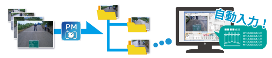 電子小黒板アプリ「電子小黒板 PhotoManager」で撮影したデジタル工事写真を、オンラインストレージを介して「PhotoManager」に自動で取込むことができます。