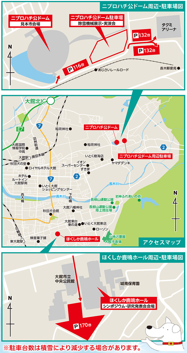 会場位置図:(https://www.thr.mlit.go.jp/yukimirai_odate/access.html)