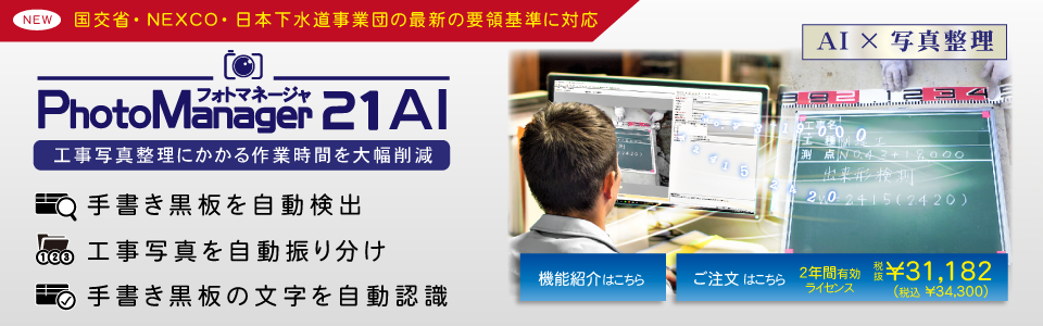 フォトマネージャは工事写真の分類・整理、電子納品が容易に可能です。